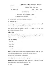 - Quyết định thành lập hội đồng thanh lý TSCĐ: Đây là văn bản do cấp có thẩm quyền ban hành nhằm chính thức thành lập hội đồng chịu trách nhiệm thực hiện quy trình thanh lý tài sản. Quyết định này quy định rõ thành phần tham gia, nhiệm vụ và quyền hạn của từng thành viên trong hội đồng.