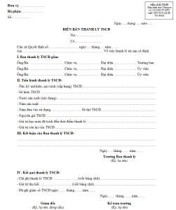 - Biên bản họp hội đồng thanh lý TSCĐ: Biên bản này ghi nhận nội dung cuộc họp của hội đồng thanh lý, bao gồm lý do thanh lý, hiện trạng tài sản, phương án xử lý và các ý kiến thảo luận, thống nhất của các thành viên. Đây là tài liệu quan trọng làm cơ sở cho các quyết định tiếp theo.