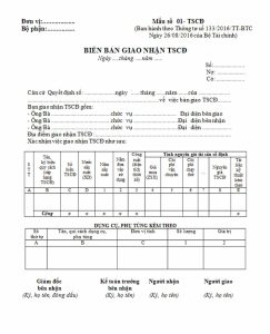 - Biên bản đánh giá lại TSCĐ: Biên bản này được lập khi có yêu cầu định giá lại tài sản cố định, thường xảy ra trong các trường hợp như kiểm toán, thanh tra hoặc tái cơ cấu doanh nghiệp. Nội dung chính bao gồm giá trị ban đầu, giá trị sau đánh giá và các căn cứ để điều chỉnh giá trị tài sản.